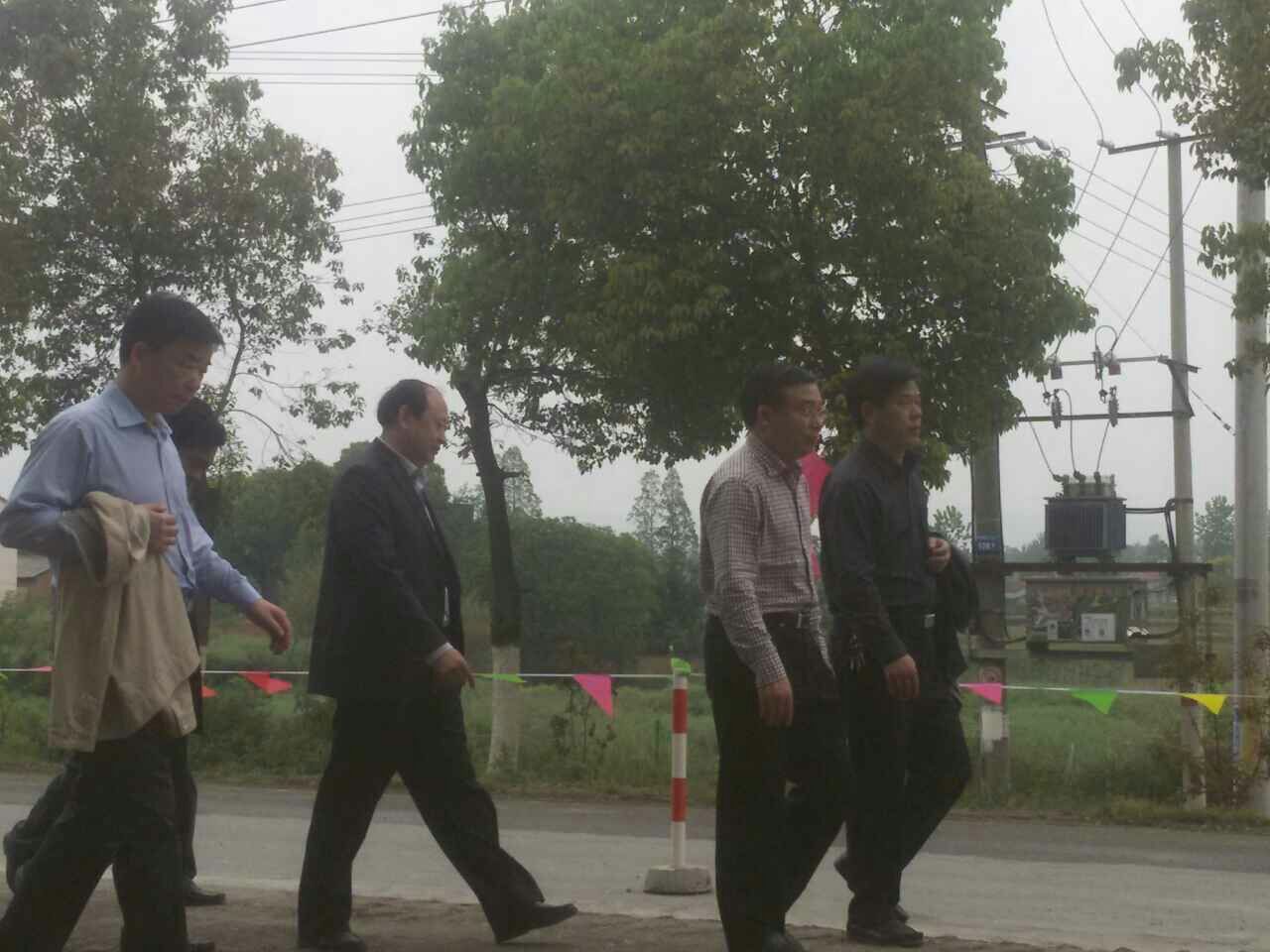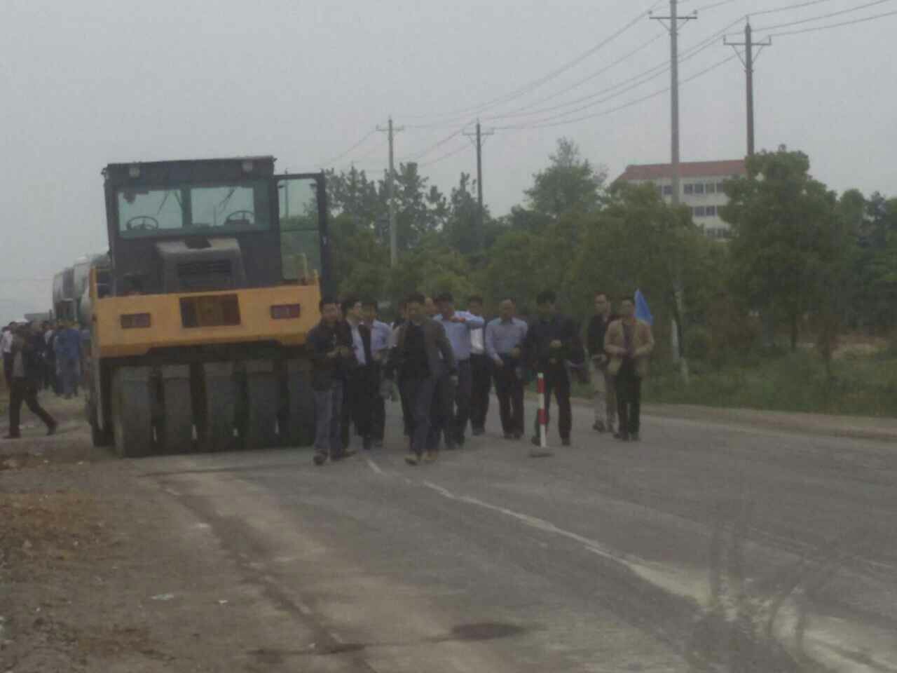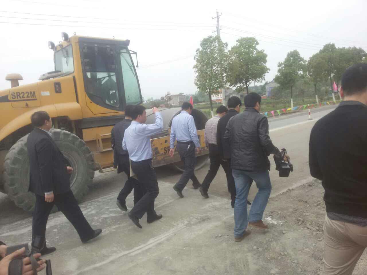 圖為荊門市委書記,湖北省公路局局長(zhǎng),京山縣公路局局長(zhǎng)現(xiàn)場(chǎng)觀摩指導(dǎo)工作。