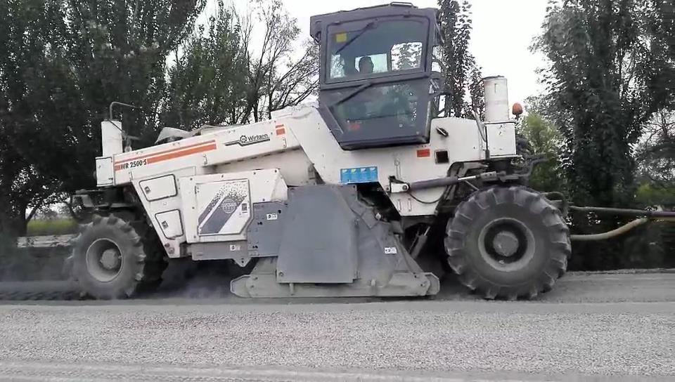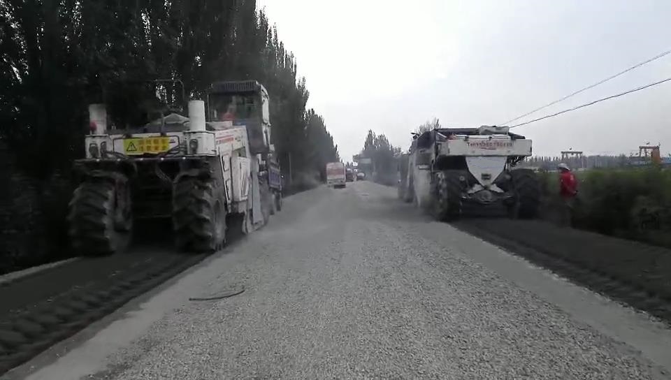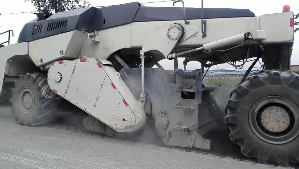 2017年8月,我公司一臺RZ2300B在山西大同與維特根WR2500同場竟技。該路段為G208國道大同北段,參與施工的RZ2300B冷再生機(jī)是我公司生產(chǎn)的經(jīng)濟(jì)型機(jī)械傳動冷再生機(jī),功率為600馬力,雙橋驅(qū)動。該型冷再生機(jī)雖然為經(jīng)濟(jì)型機(jī)械傳動冷再生機(jī),與四輪升降機(jī)械傳動冷再生機(jī)相比,實際工作效率卻一點也不差。該路段施工的初始500米,其強度近似水泥路面,如果是一般的液壓傳動冷再生機(jī)將會完全干不動,但我們的RZ2300B經(jīng)受住了考驗,一分鐘只能跑兩米,對于機(jī)械傳動600馬力的冷再生機(jī),這真是艱苦的工程。后續(xù)的8公里路基強度是標(biāo)準(zhǔn)強度,機(jī)器的施工輕松了許多,后期加入的一臺維特根WR2500與我們的RZ2300B并肩施工,兩機(jī)器均能跑到7米左右。